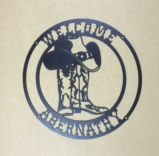 Cowboy Boots & Hat Personalized Welcome Sign (A38)