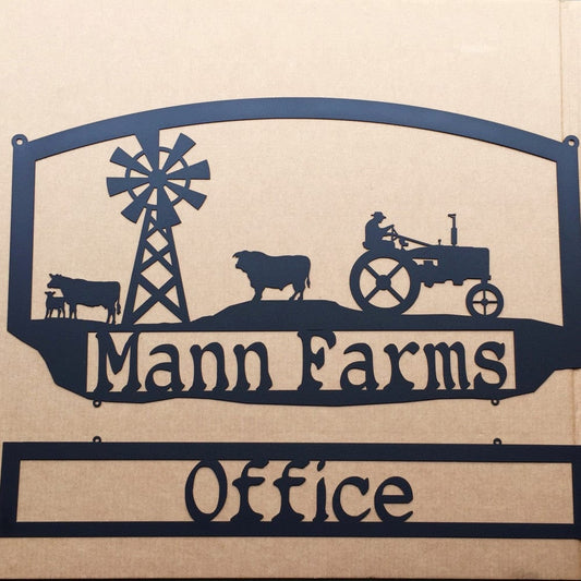 Custom Metal Farm Sign with Cow and Tractor (E12)