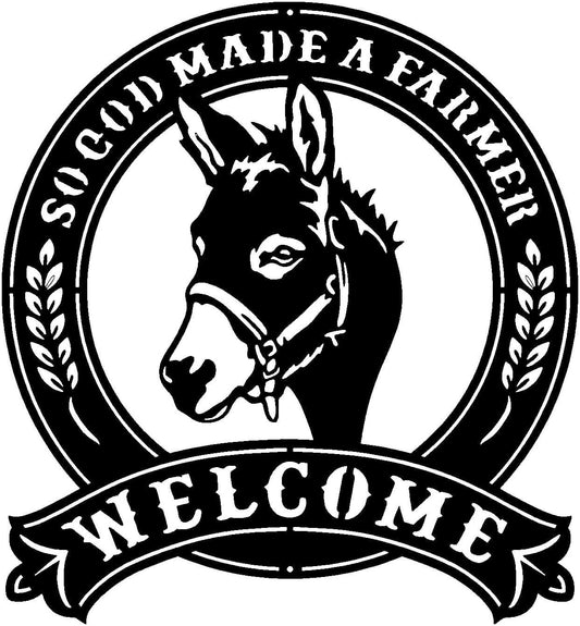 Divine Harvest: God-Made Farmer Welcome Sign with Donkey (D55)