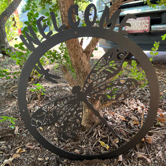 Dragonfly Metal Welcome Sign | Personalized Rustic Outdoor Decor - D52