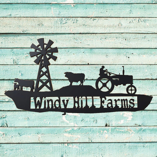 Farm Scene with Tractor and Cows Metal Sign with Custom Text Field (H0)