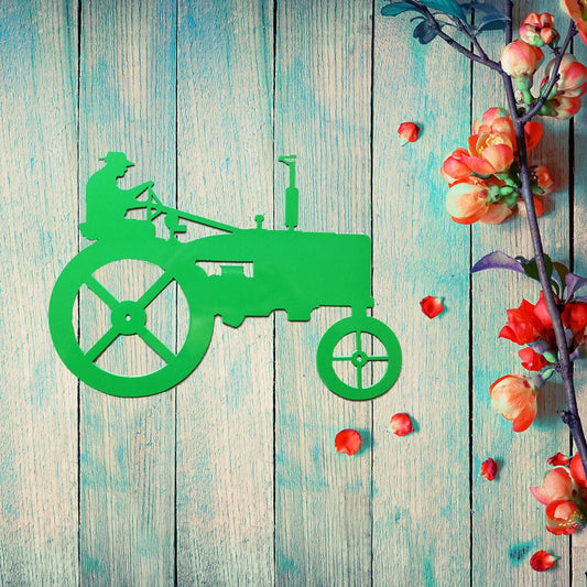 Farmer on Tractor Metal Wall Art (A4)