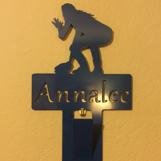 Hat Rack, Backpack, Purse Holder with Girl Softball Player and Personalized Text Field 4 hooks (P27)