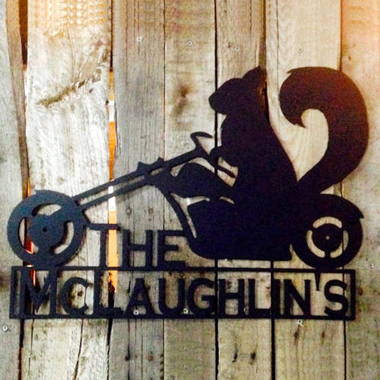 Motorcycle Squirrel Metal Wall Art with Custom Text (H9)