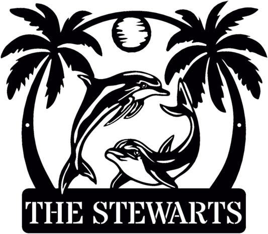 Tropical Dolphin Escape – Custom Metal Sign with Palm Trees & Sun (B92)