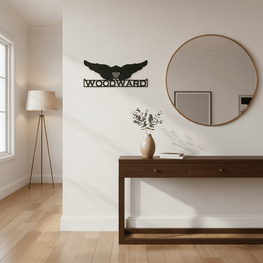 Western Ranch Sign – Wagon Wheel Metal Art for Barn or Entryway (O25)
