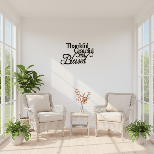 Thankful Grateful Blessed Metal Wall Art - Inspirational Home Decor Sign - Farmhouse Wall Hanging for Living Room, Bedroom & Entryway (E48)