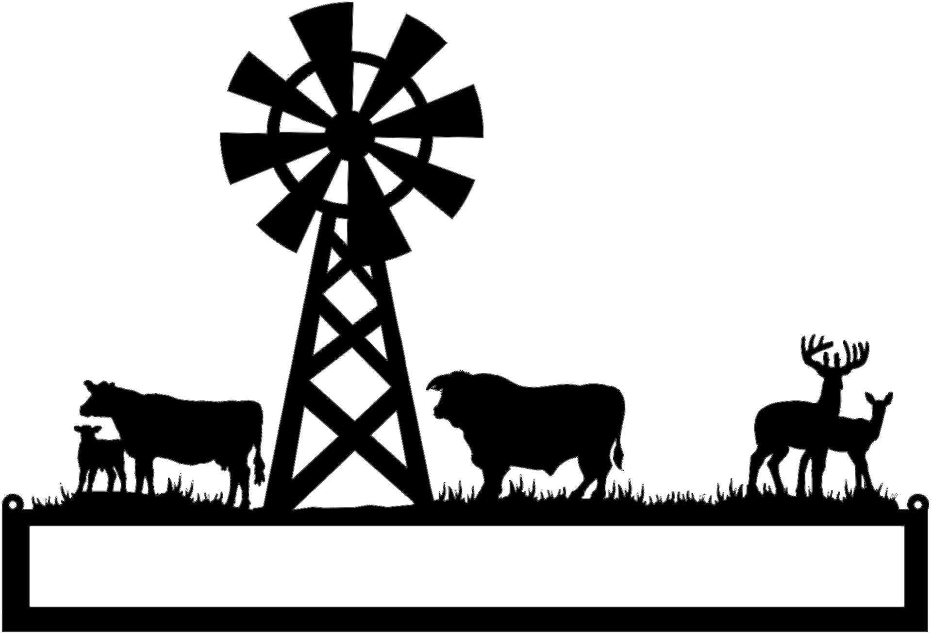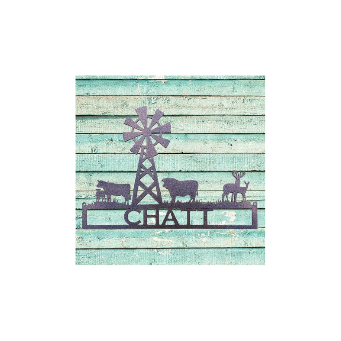 Metal Art Windmill with Cows and Deer Custom Text sign (G12)